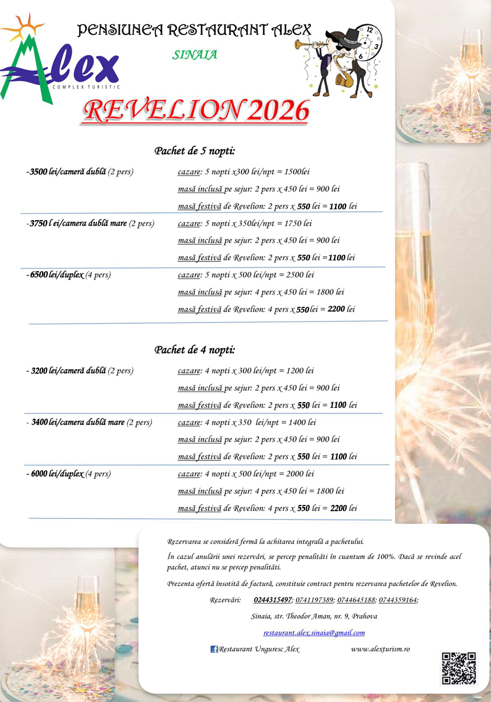 - Camerele sunt dotate cu TV color, internet wireless si frigobar. Rezervarile se fac odata cu achitarea sumei integrale a sejurului.